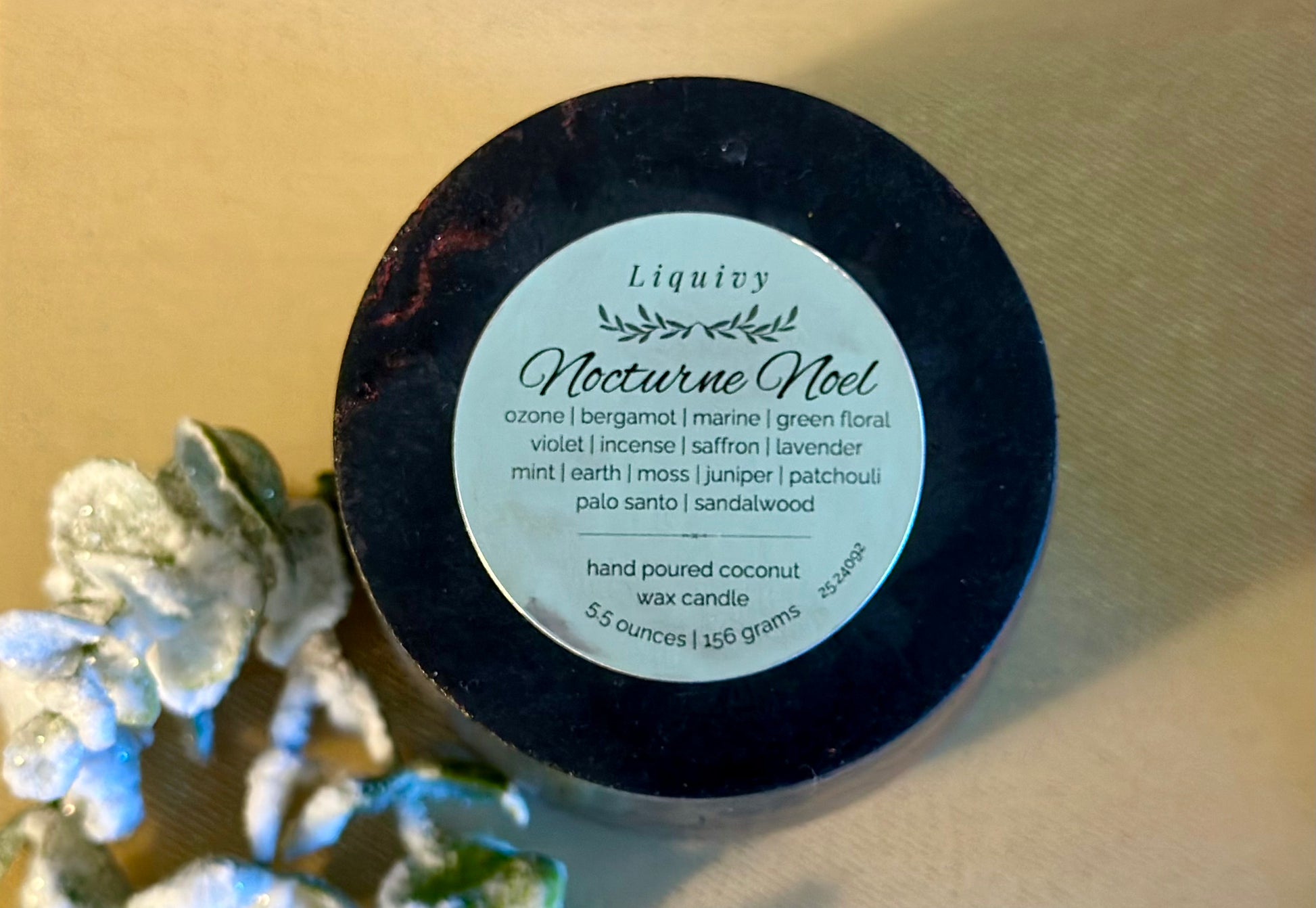 Step into the hushed enchantment of a winter’s night. Nocturne Noel blends airy ozone and marine with soft green floral, cucumber, and violet. The heart glows with incense and saffron, while earthy juniper, patchouli, and sandalwood provide a grounding embrace. A scent that captures the stillness and magic of Christmas Eve under the stars.