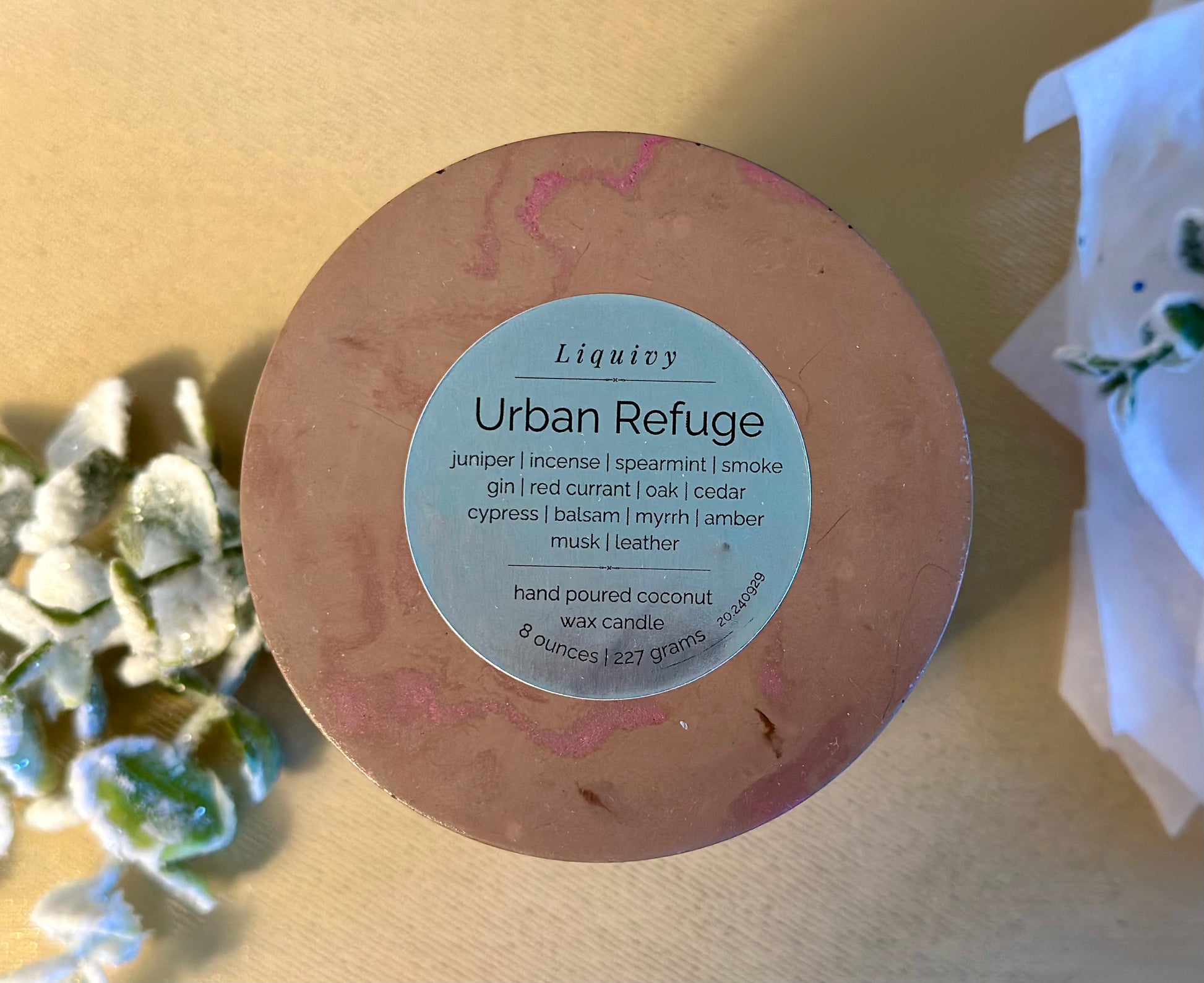Step away from the city and immerse yourself in the calm sanctuary of Urban Refuge. Picture it…on the edge of the city, where quiet paths wind beneath towering trees and the air is tinged with the fresh scent of juniper and evergreen woods. Opening with the clean, crisp notes of juniper, Urban Refuge gradually reveals the aromatic blend of gin and red currant, bringing a subtle fruitiness balanced by earthy cedar, rich oak, and deep cypress. This sophisticated and serene fragrance embodies a peaceful escape—an invitation to reconnect with nature leaving the city behind.